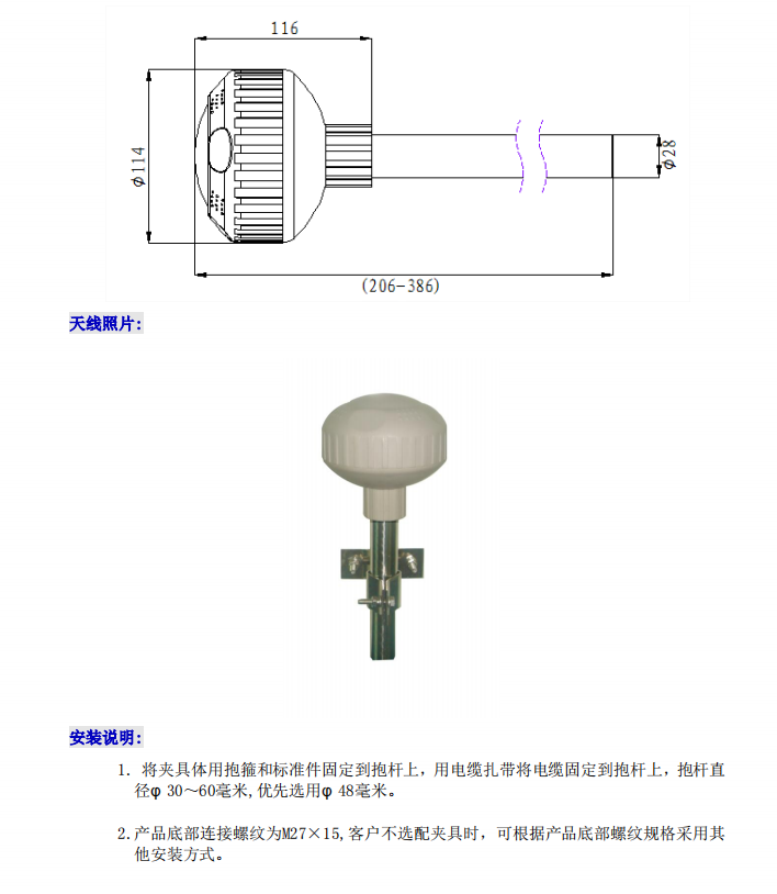 4、天線外罩采用耐候性良好,抗老化優(yōu)質(zhì)材料,適合長(zhǎng)期野外環(huán)境下工作。